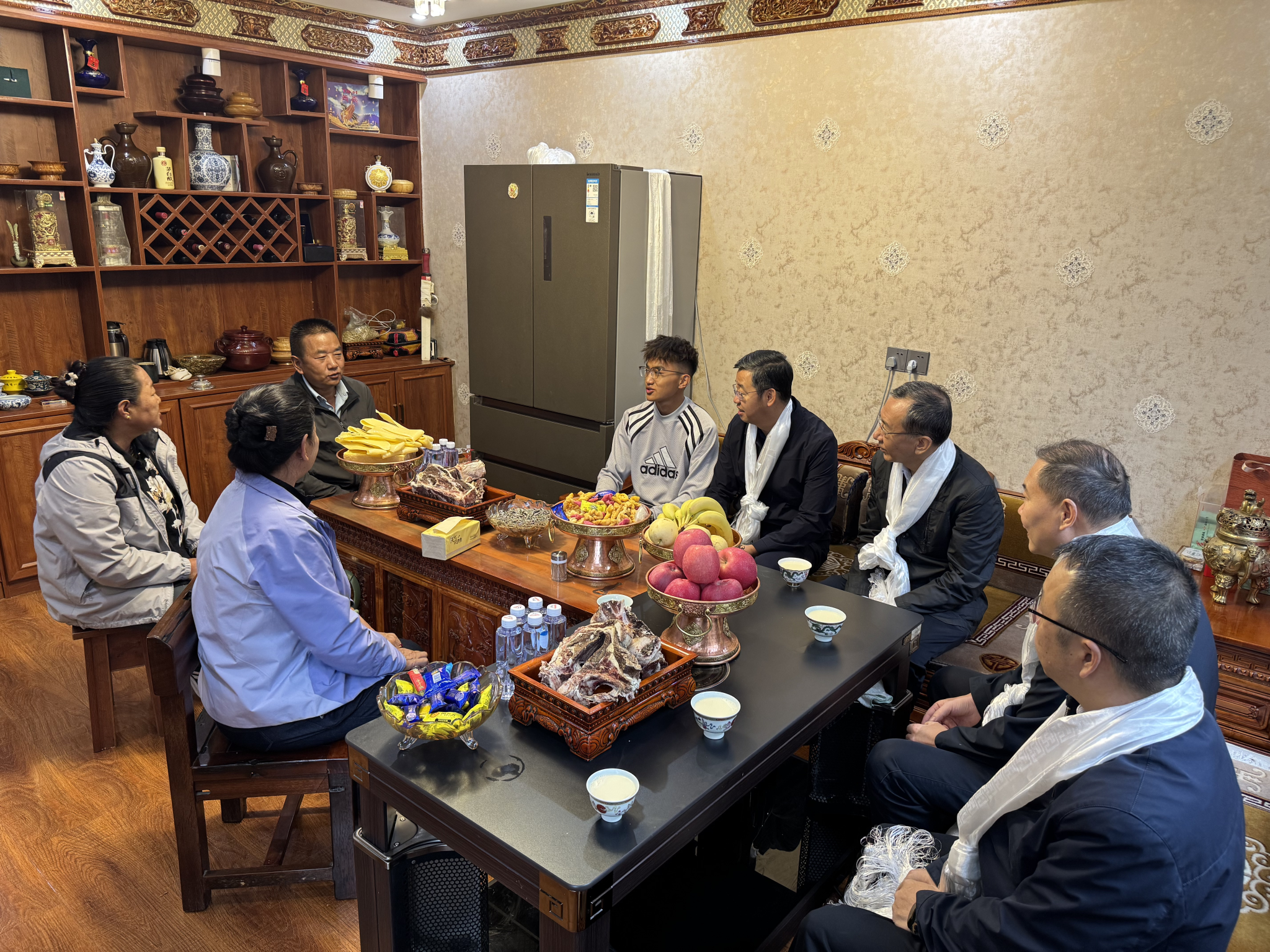 8月25日,王进富一行专程来到拉萨市城关区我校经济管理学院商管2409班扎西次仁学生家中进行家访并促膝长谈。王进富对学生及家人表达了亲切的慰问,深入了解了家庭生活状况、工作情况和学生的未来职业规划,倾听学生在学习和生活中遇到的困难与需求,并向家长介绍了学生的学业情况以及学校的奖助学金体系和就业帮扶措施,鼓励扎西次仁坚定理想信念、努力学习知识,练就过硬本领,回报家庭、建设家乡、服务社会,做民族团结进步的践行者。扎西次仁家长谈到,党中央高度重视民族地区教育发展,持续加大惠民政策扶持力度,不仅让我们民族地区家庭的生活越过越有盼头,更给了孩子们通过知识改变命运、实现人生价值的机会。同时,也对学校专程跨越千里上门家访、用心用情关怀培养学生表示衷心感谢,并表示会积极配合学校,家校协同,共同助力学生成长成才,回报社会。