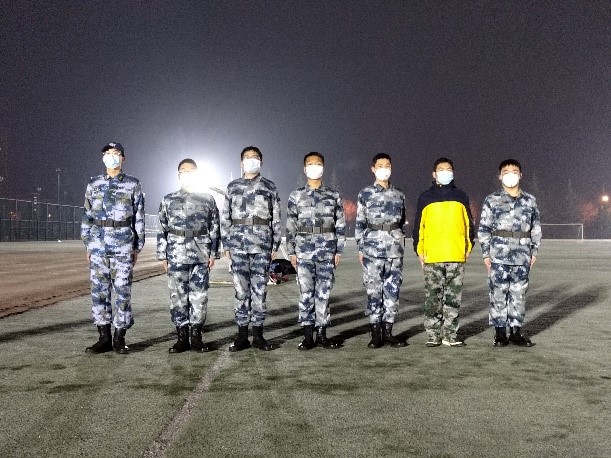 在这之后开始了全员核酸的检测,每一次的全员核酸检测都有着他们的辛勤付出,在天刚蒙蒙亮的清晨,他们就动身前往操场,为马上要进行的核酸检测开始准备工作:搭棚子、摆设备、调试工具……在零度以下的操场上,张峻宇和其他战友不畏严寒,身着迷彩与医护人员一起,化身守护学校的战士,保证每一次任务的顺利进行。