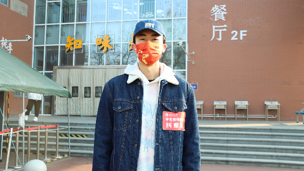 “我希望能付出一份微薄的力量。”两年前新冠疫情初次暴发之际,正是张峻宇同学刚入学的时候,彼时作为团支书的他听到消息后很希望通过自己的力量进行志愿服务,在上网课期间也利用下课时间服务社区,帮助腿脚不方便的居民采购物资。“我很开心可以成为学校的志愿者。在学校的防疫工作中,我感受到了自己作为当代青年的责任和价值。”