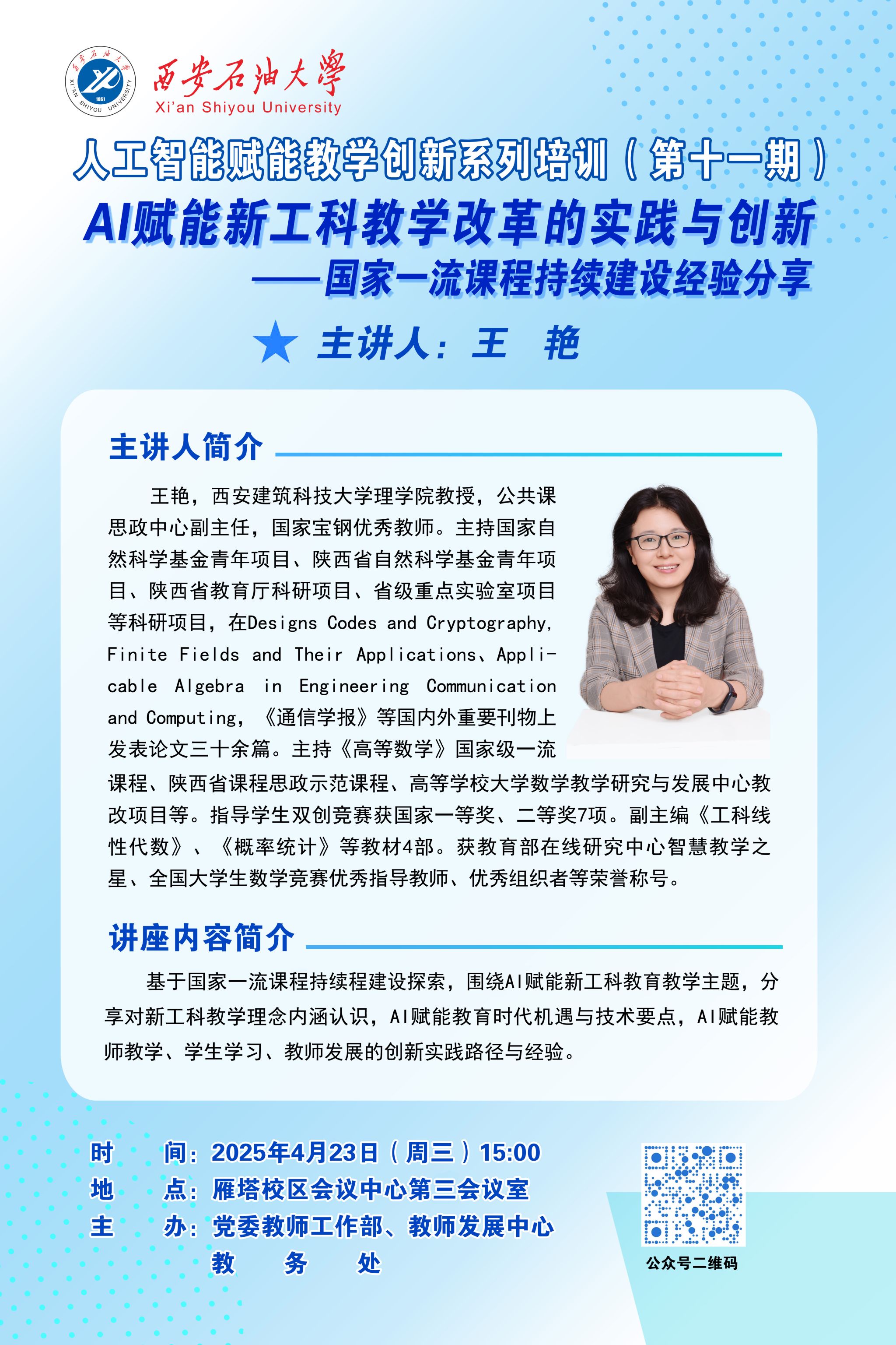 报告地点:鄠邑校区图书馆弘石学术报告厅